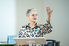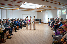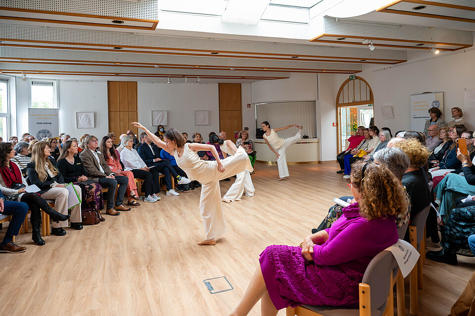 „Ein Preis für Papier und Poesie“ titelte die Coburger Presse. Die Preisverleihung fand in diesem Jahr in Coburg in den Räumen des Kunstvereins, vom SI-Club Coburg organisiert, statt und es hätte zu diesem Anlass keinen passenderen Rahmen für Aja von Loeper und ihre Kunst geben können. Die Verbindungen zu Coburg sind eng. Kreativ wie die Kunst, wurde auch das Programm gestaltet. Im dialogisch bestuhlten Raum entstand in der Mitte Fläche für die Sequenzen von vier Tanzenden vom Ballett des Landestheaters Coburg, die thematisch auf die Arbeiten von Aja von Loeper abgestimmt waren. So konnten auch die Ehrengäste, unter ihnen unsere SI-Deutschland-Präsidentin Manuela Nitsche, die Geschäftsführerin der Europäischen Metropolregion Nürnberg Dr. Christa Standecker, der Bürgermeister der Stadt Coburg Can Aydin und die Laudatorin Dr. Barbara Kahle nicht nur während ihrer Grußworte sichtbar sein. Alle acht am Preisverfahren beteiligten SI-Clubs regten durch zwischenzeitlich programmatisch platzierte Statements zum Nachdenken über die Brisanz der Kunstförderung von Frauen an. Aus der Mitte der 100 geladenen Gäste erschienen jeweils eine Clubschwester, stehend wie mahnende Säulen und trugen immer noch bedenkenswerte Tatsachen zur Situation von Künstlerinnen in unserer Gesellschaft vor: